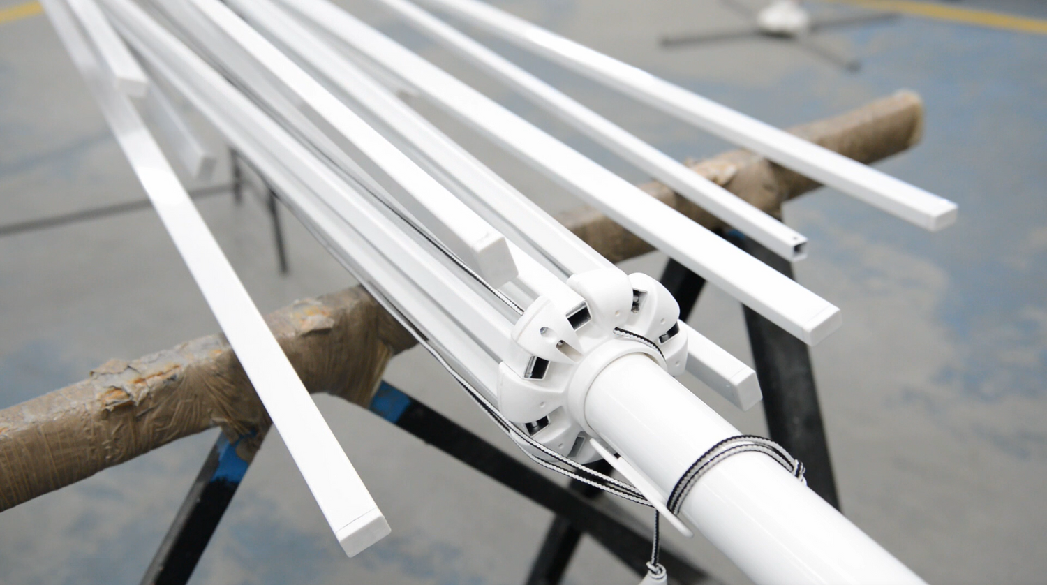 Parasollerna genomgår vindtunneltester för att garantera maximal stabilitet och hållbarhet, även i tuffa förhållanden med vind och rusk.